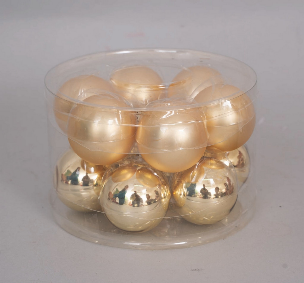 12 SFERE VETRO MM.60 ORO SATINATE/METALLIZZATE ASS.IN CILINDRO