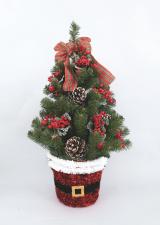 ALBERINO VERDE PVC CM.60 BASE ROSSA C/DECORO BABBO ROSSO E LUCI BATT
