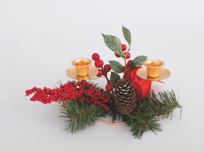 CENTROTAVOLA C/2 PORTACANDELE METAL LO CM.20X10 DEC.BACCHE E PIGNA