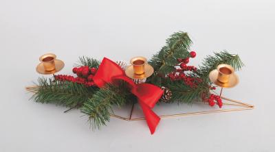CENTROTAVOLA C/3 PORTACANDELE METALLO CM.47X10H DEC.BACCHE E PIGNA