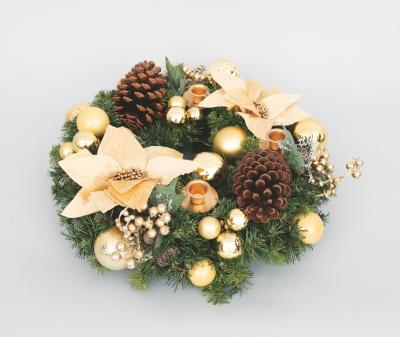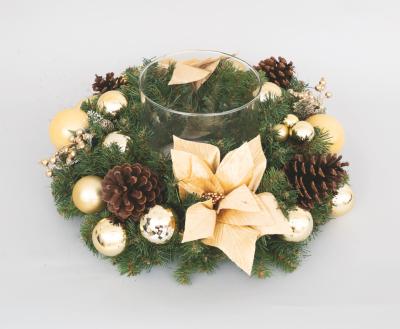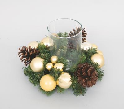 CENTROTAVOLA PVC C/VASO VETRO CM.35X20H DEC.ORO FIORI SFERE E PIGNE