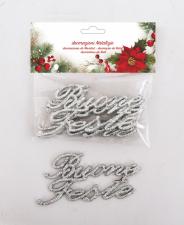 6 BUONE FESTE PVC CM.12X6H ARGENTO GLITTER IN BUSTA