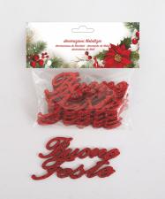 6 BUONE FESTE PVC CM.12X6H ROSSO GLITTER IN BUSTA