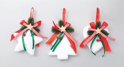 ALBERO,STELLA,CUORE POLISTIROLO CM.9 CON NASTRINO RIGHE BIANCO RS