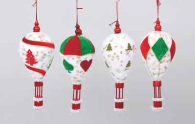 MONGOLFIERA VELLUTO CM.8X8X21 C/FASCE BIANCO/ROSSO 4 MOD.ASS.