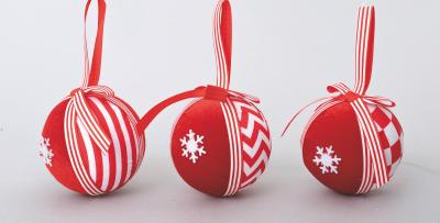 SFERA BIANCA MM.80 DEC.STELLINA LEGNO E NASTRINO RIGHE ROSSE E BIANC