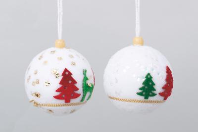 SFERA BIANCA MM.60 DEC.STELLINA LEGNO E NASTRINO RIGHE ROSSE E BIANC