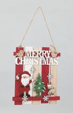 PENDENTE LEGNO CM.22,5 STACCIONATA DEC.MERRY CHRISTMAS BABBO RENNA