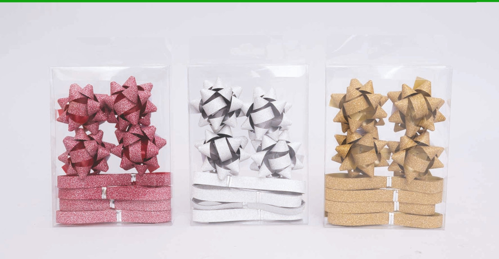 SET 8 COCCARDE+NASTRO BRILLANTATO ORO/ROSSO ASS.IN PVC BOX