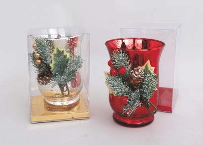 VASETTO VETRO PORTACANDELE CON AGRIFOGLIO CM.11X17 ORO/RS