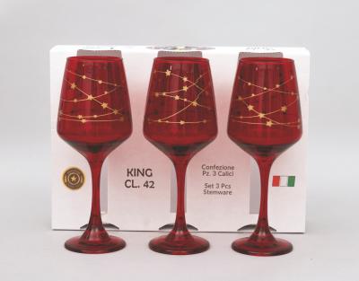 3 BICCHIERI CALICE VETRO ROSSI DEC.STELLINE ORO