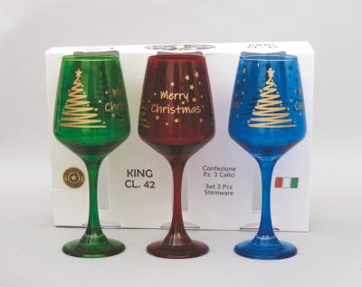 3 BICCHIERI CALICE VETRO DEC.ALBERI ORO