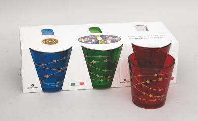 6 BICCHIERI VETRO ROSSI DEC.MERRY ORO