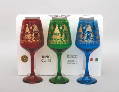 3 BICCHIERI CALICE VETRO DEC.GNOMI ORO