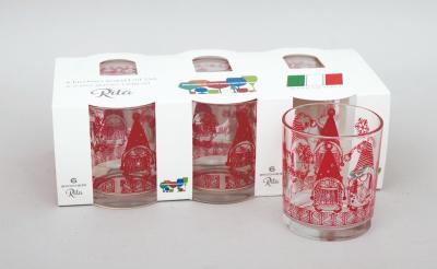 6 BICCHIERI VETRO DEC.GNOMI ROSSI
