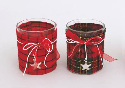 PORTACANDELA VETRO RIVESTIMENTO SCOZZESE CM.8X12 2 MOD.ASS.TI