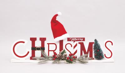 MERRY CHRISTMAS LEGNO CM.58X28H DEC.CAPPELLO