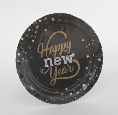SET 6 PIATTI CARTA CM.23 NERI STELLINE HAPPY NEW YEAR