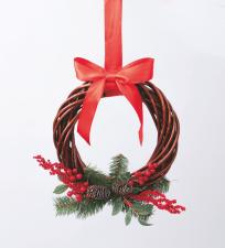 CORONA VIMINI CM.30 DECORATA BACCHE RAMETTO E PIGNE