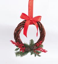 CORONA VIMINI CM.25 DECORATA BACCHE RAMETTO