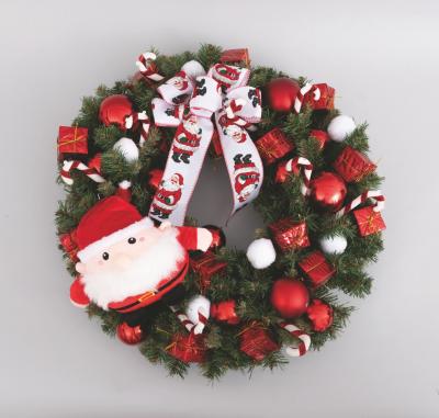 CORONA PVC VERDE CM.60 DEC.BABBO NATALE SFERE ROSSE E BASTONCINI