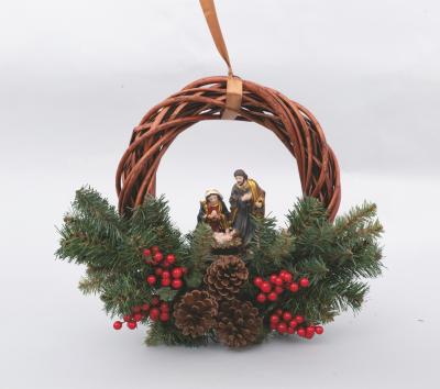CORONA VIMINI CM.40X30H CON NATIVITA' RESINA E BACCHE ROSSE
