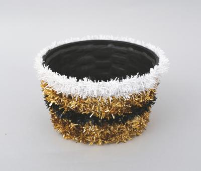 VASETTO PVC CM.15X9H DEC.FILO ORO CINTA NERA IN BUSTA