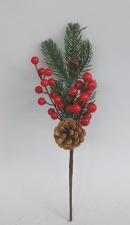 RAMETTO PVC CM.36 BACCHE ROSSE,PIGNE E RAMETTI